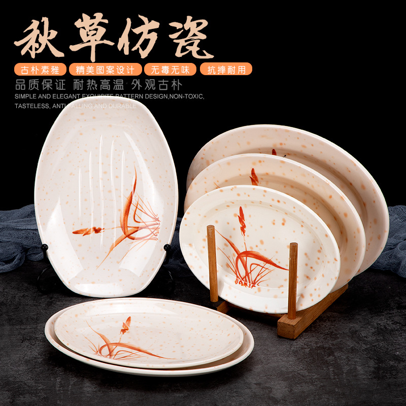 秋草プラスチック楕円形料理皿腸粉皿メラミンバイキング皿魚皿洋食平皿皿食器食器