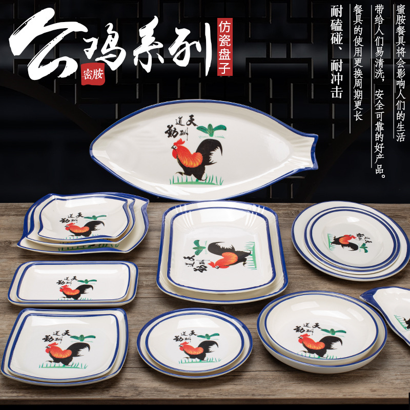雄鶏農庄専用のメラミンは磁器の皿をまねて焼きます。