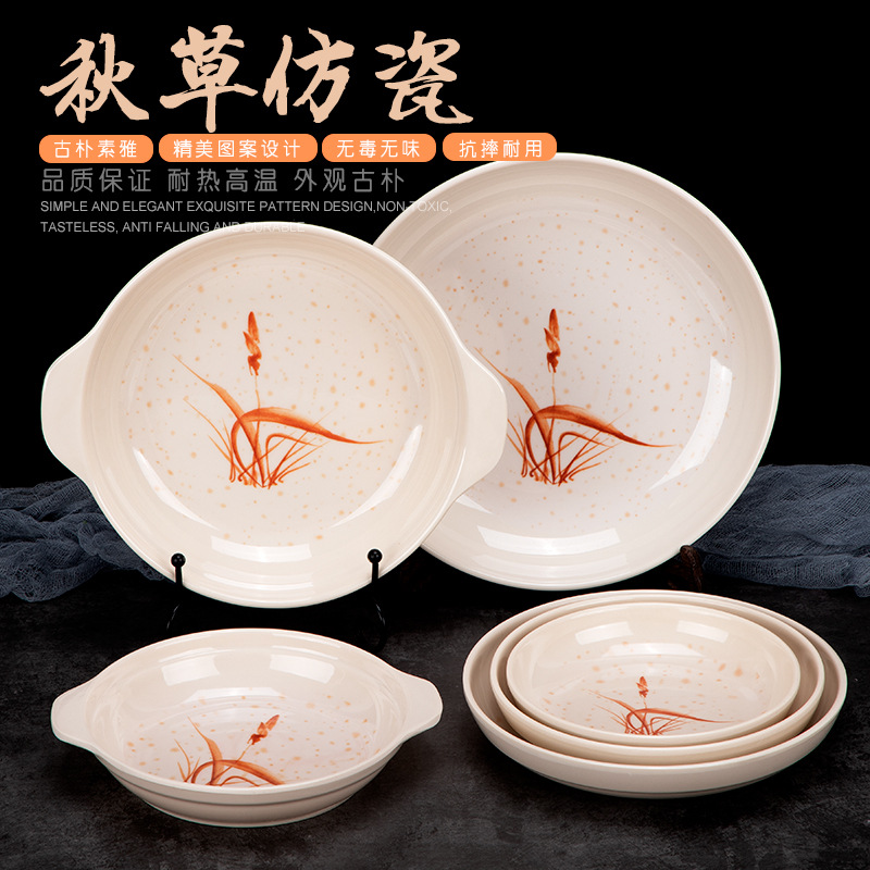 秋草のプラスチックの冷練の皿の双耳のアワビの皿の料理の皿のファーストフードの皿の腸の粉の皿のメラミンは磁器の食器をまねます