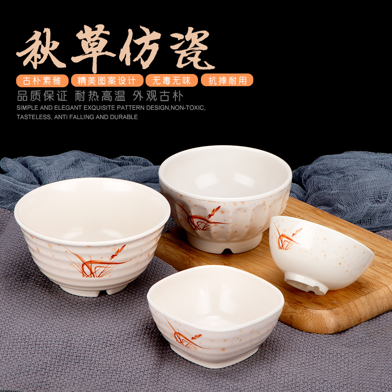 秋草のプラスチックの碗のスープの碗の小さい碗のご飯のおかゆの碗の調味料の碗のメラミンの四方の碗の鍋の碗は転んで磁器の食器をまねます