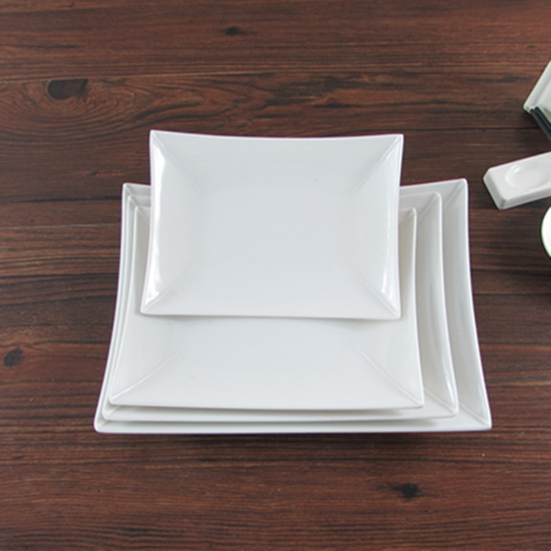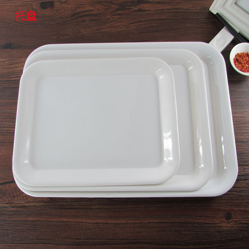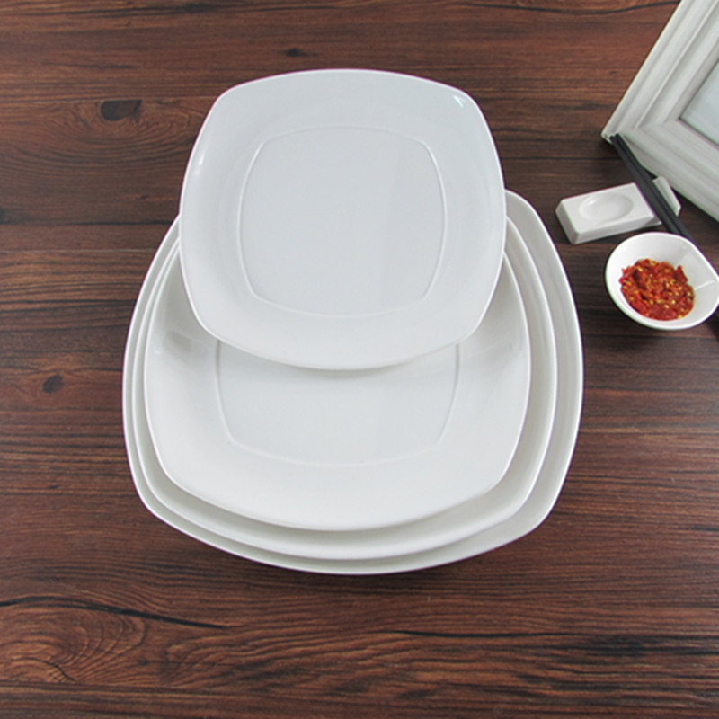 日本式の厚い白い四角い料理皿のファーストフード皿の炒め物皿の軽食皿のメラミンは磁器の食器をまねて転んで耐えます。