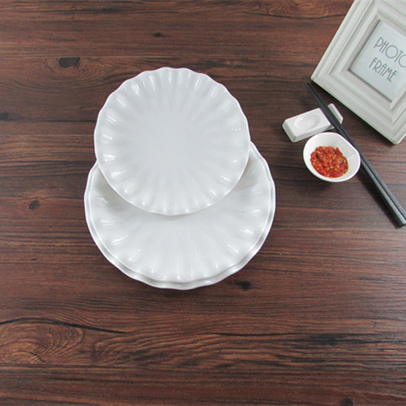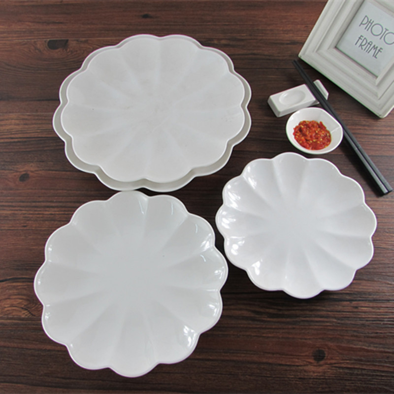 日本式の白い厚いレストランの冷たい料理の皿ktvの軽食の皿のギョーザの皿の花びらの鍋の皿の食器は転びを防ぎます。