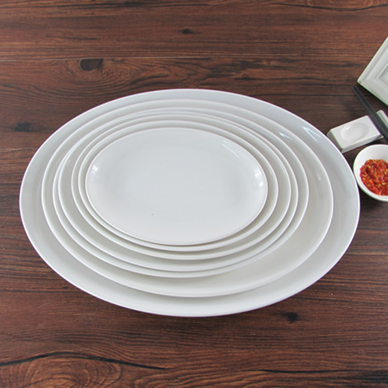 白い厚い魚の皿のかん水の皿の楕円の円盤は粉の皿の鍋のレタスの皿の軽食の皿のメラミンの食器を炒めます。