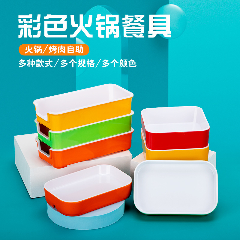 厚い新型の2色の四角い長方形の鍋の皿の料理の皿のバーベキューの皿の焼肉の皿は磁器のメラミンの食器をまねます。