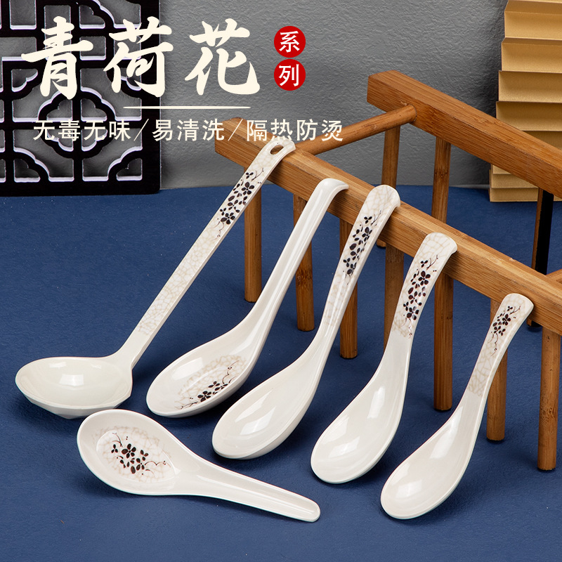 10 個パック) Qinghe メラミンプラスチックレストランファーストフードレストランロングハンドルスプーンスプーンライススプーン模造磁器食器