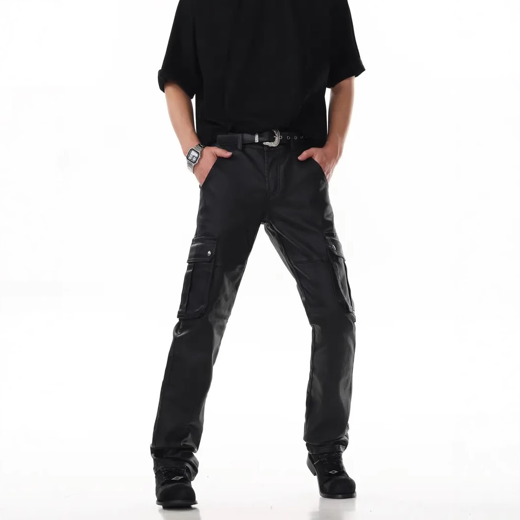 2025 クロスボーダー新 PU レザーパンツヨーロッパとアメリカの売れ筋作業服ストレートカジュアルパンツメンズバイカーレザーパンツホットスタイル