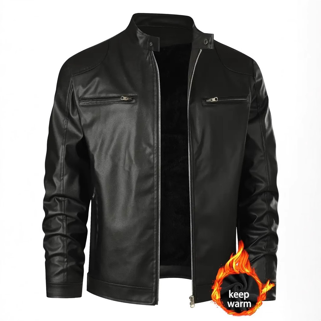 南方冬保温ボタン覇気機関車男性多ポケットPUコート立襟ファスナーカーディガンヨーロッパコード革ジャケット