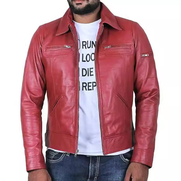 24秋冬の新型男性の高品質のスリムな襟の斜めの皮の服の英倫のファッションの機関車の服の皮のジャケットのコート