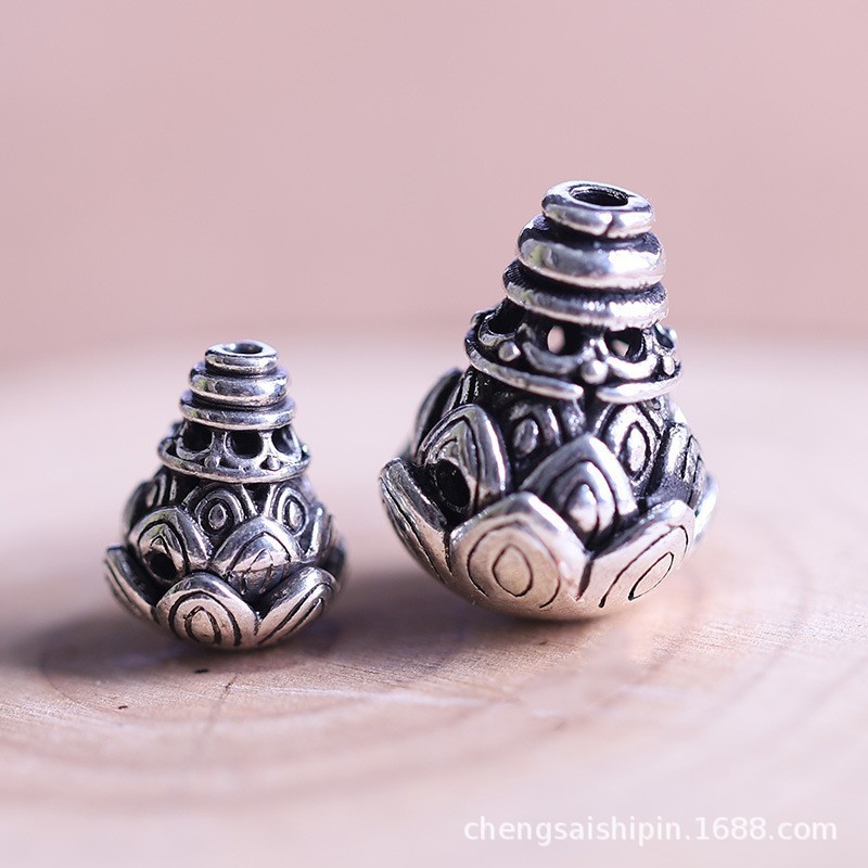 チベット銀レトロ蓮花三通仏頭文遊びアクセサリーブレスレット小金剛星月菩提三通diy部品