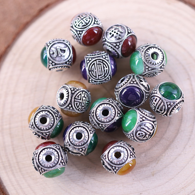 チベット銀モザイク樹脂ドリル福字六字真言散珠ネパール手作り復古喜字ビーズビーズ
