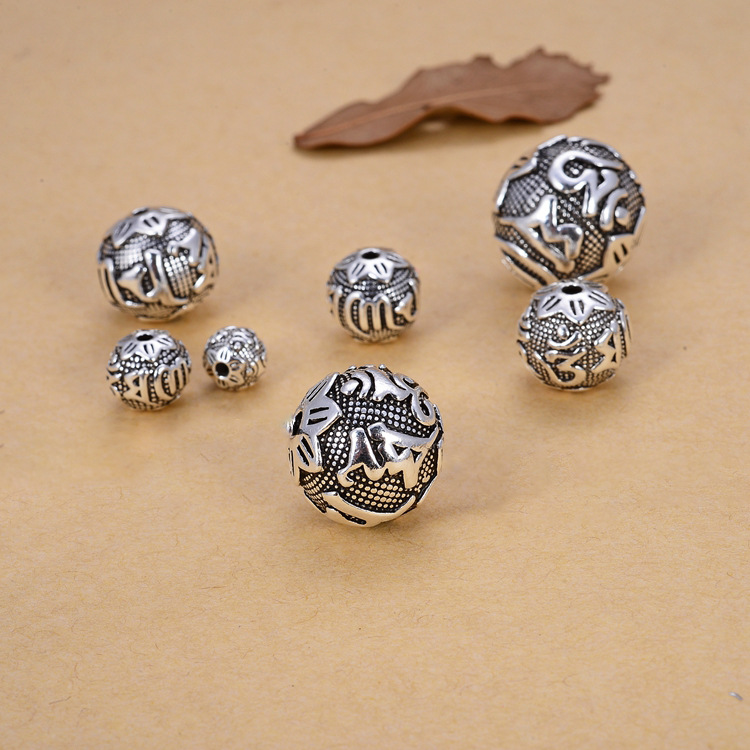 チベット銀円珠六字真言転運珠散珠創意手作りビーズ材料仏珠ブレスレットdiy部品飾りz