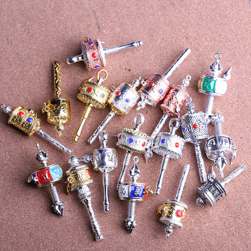 チベット銀チベット手回転ホイール六字真言金剛杵鈴自動車バッグ服ストラップペンダントアクセサリー