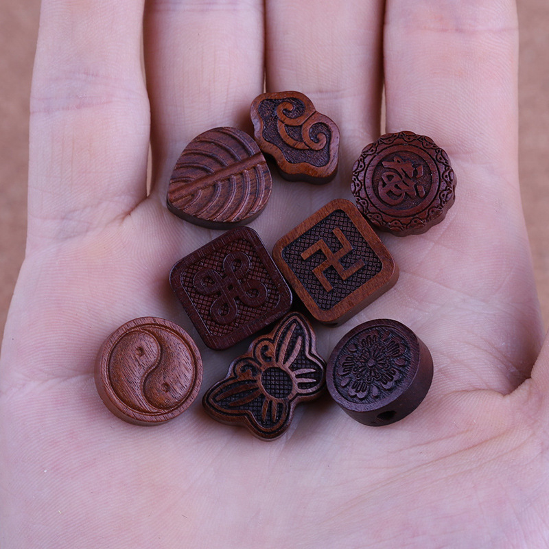 天然の黒檀木の手作り彫刻吉祥如意背雲小ペンダント金剛星月菩提仏珠アクセサリー散珠
