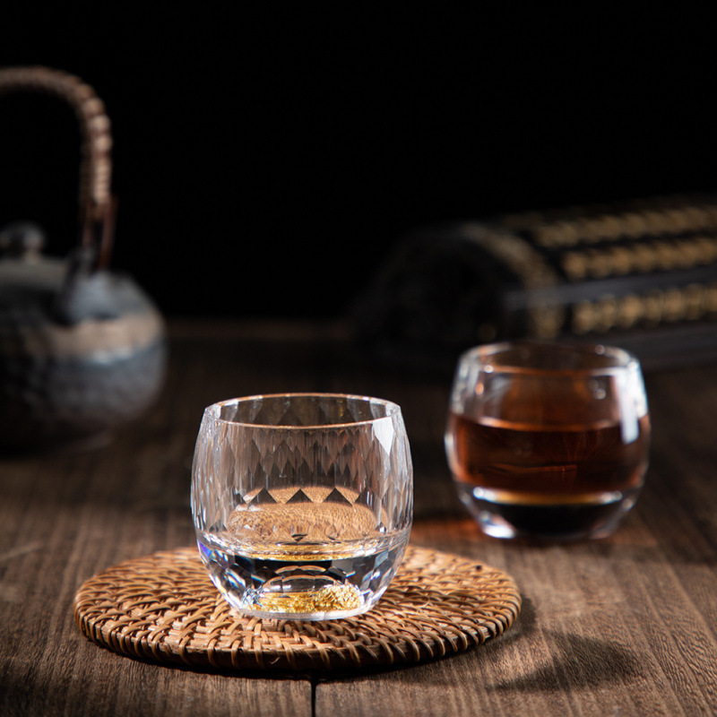 クリスタルガラスティーカップ小さなティーカップ日本透明ガラスカンフーティーカップ家庭用ティーカップ小さなワイングラスバッチ