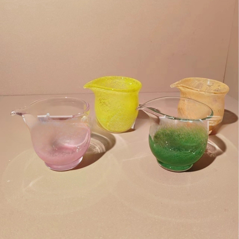 小紅書人気のクラウドパウダーチャイナフェアカップカンフー茶海手作りガラスカップティーセットピンクゴールドストーン