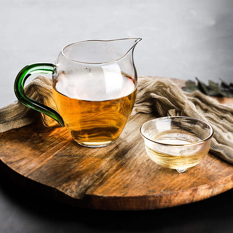 日本製厚底ガラスフェアカップ、耐熱家庭用茶海茶ディスペンサー、カンフー茶器アクセサリー、透明フェアカップバッチ