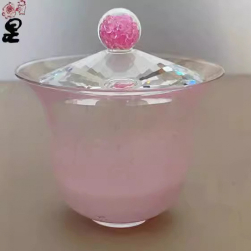 手作りクリスタルガラスバブルカバーボウルピンクダイヤモンド中国風ガラスティーボウルホームオフィスティーカップカラーガラスカップ