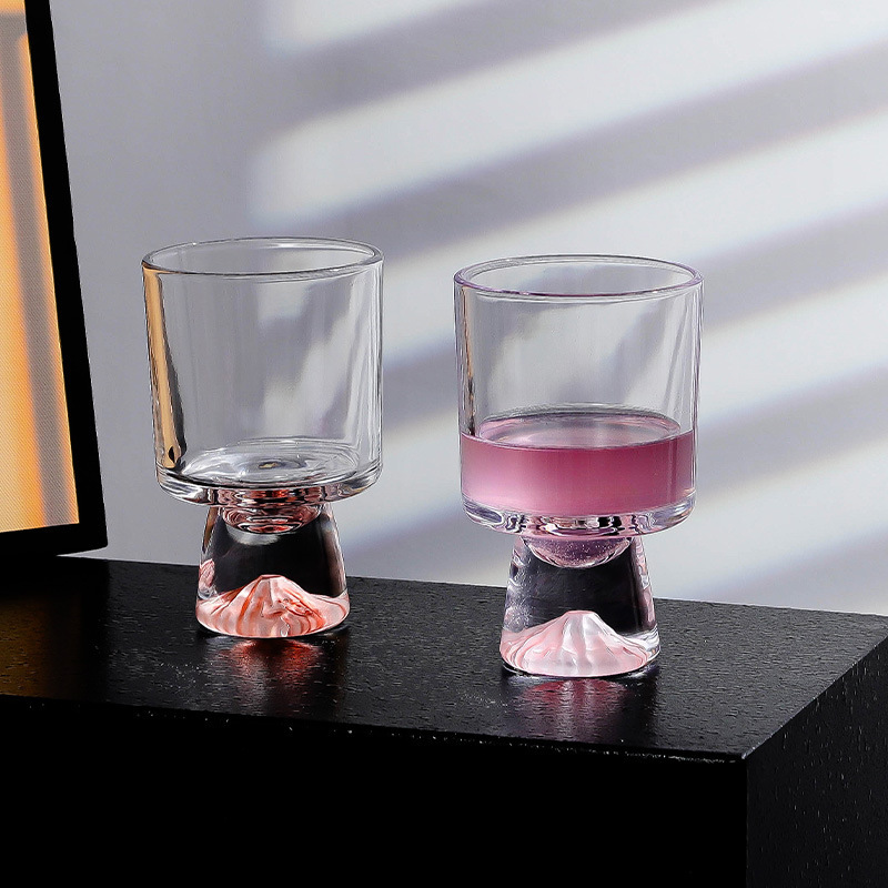 日式创意彩色富士山杯雪山杯高颜值水杯果汁啤酒杯子木盒威士杯批