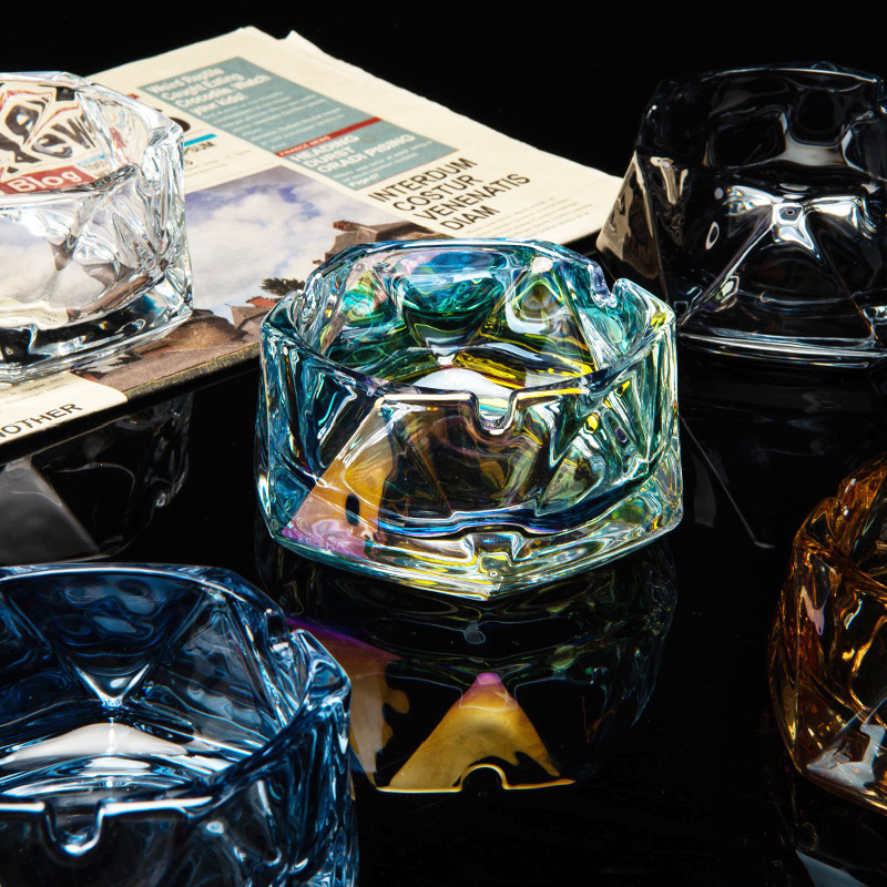 創意八角insガラス灰皿家庭用リビングオフィス創意個性潮流防飛高級灰皿