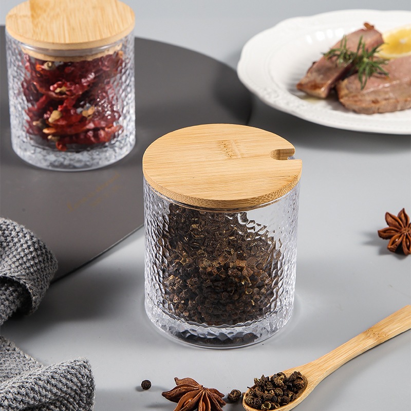 緑典日式ハンマー目紋ガラス密封缶創意竹木茶葉缶調味缶収納缶台所用品