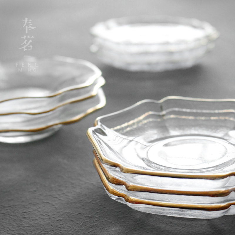 ガラスコースター、カンフー茶コースター、茶道アクセサリーコースター、クリエイティブで多用途な丸型断熱パッド、金と石