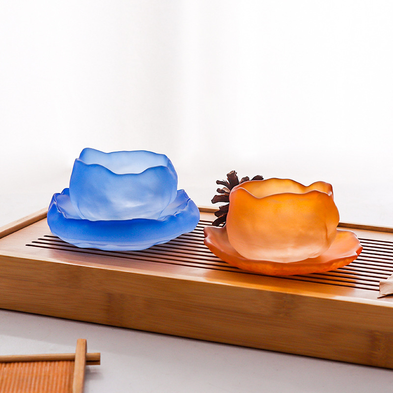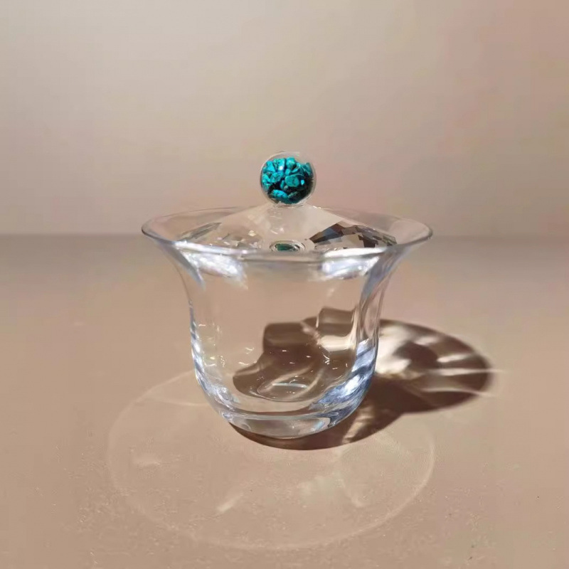 手作りクリスタルガラスバブルカバーボウルターコイズピンクダイヤモンド中国風ガラスティーボウルホームオフィスティーカップティーセット