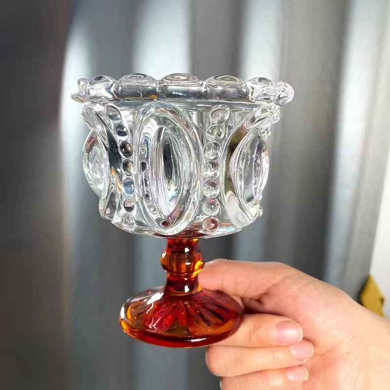 ニッチインフレンチレリーフゴブレットレトロシャンパングラス高価値家庭用女性赤ワイングラスガラスウォーターカップ