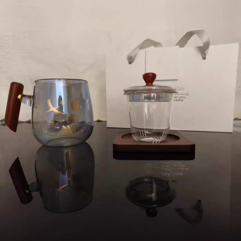 木製ハンドルティーメッシュ灰カラフルな高温耐性マグビジネスハイエンドギフトオフィスティーカップお土産
