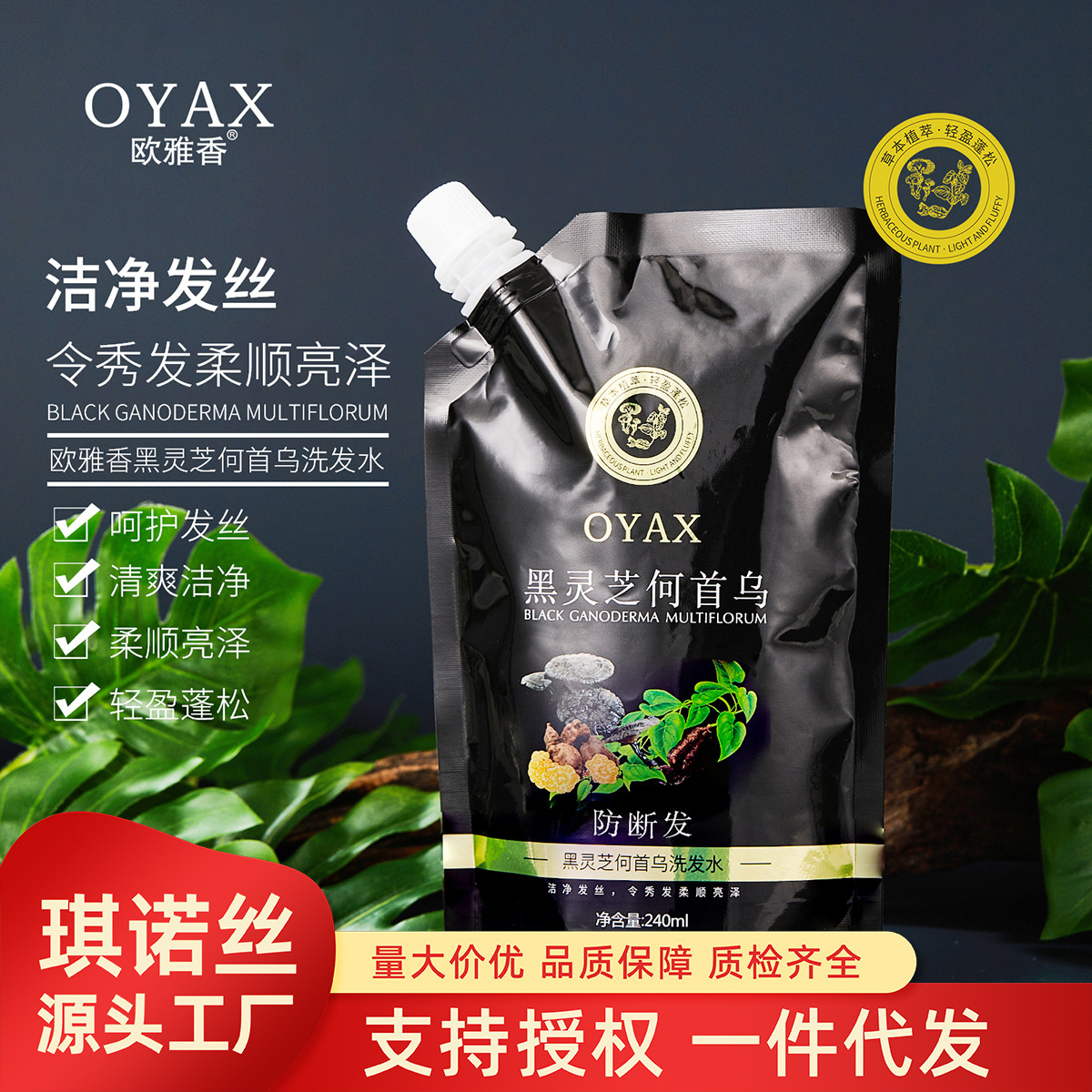 Ouya フレグランス ブラック霊芝とポリゴナム ムリクサ シャンプー さわやか、クリーン、軽く、ふわふわ、滑らかで光沢のあるバッグ シャンプー
