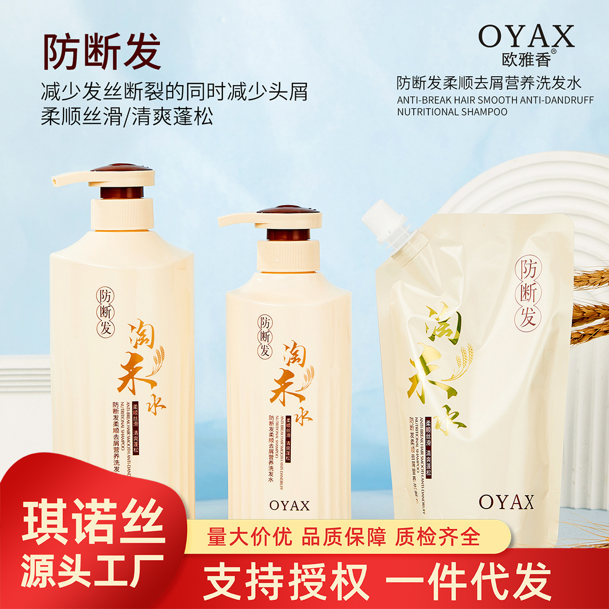 Ouya 香りの切れ毛防止、滑らかでふけ防止の栄養シャンプー、米水保湿と修復シャンプー在庫あり
