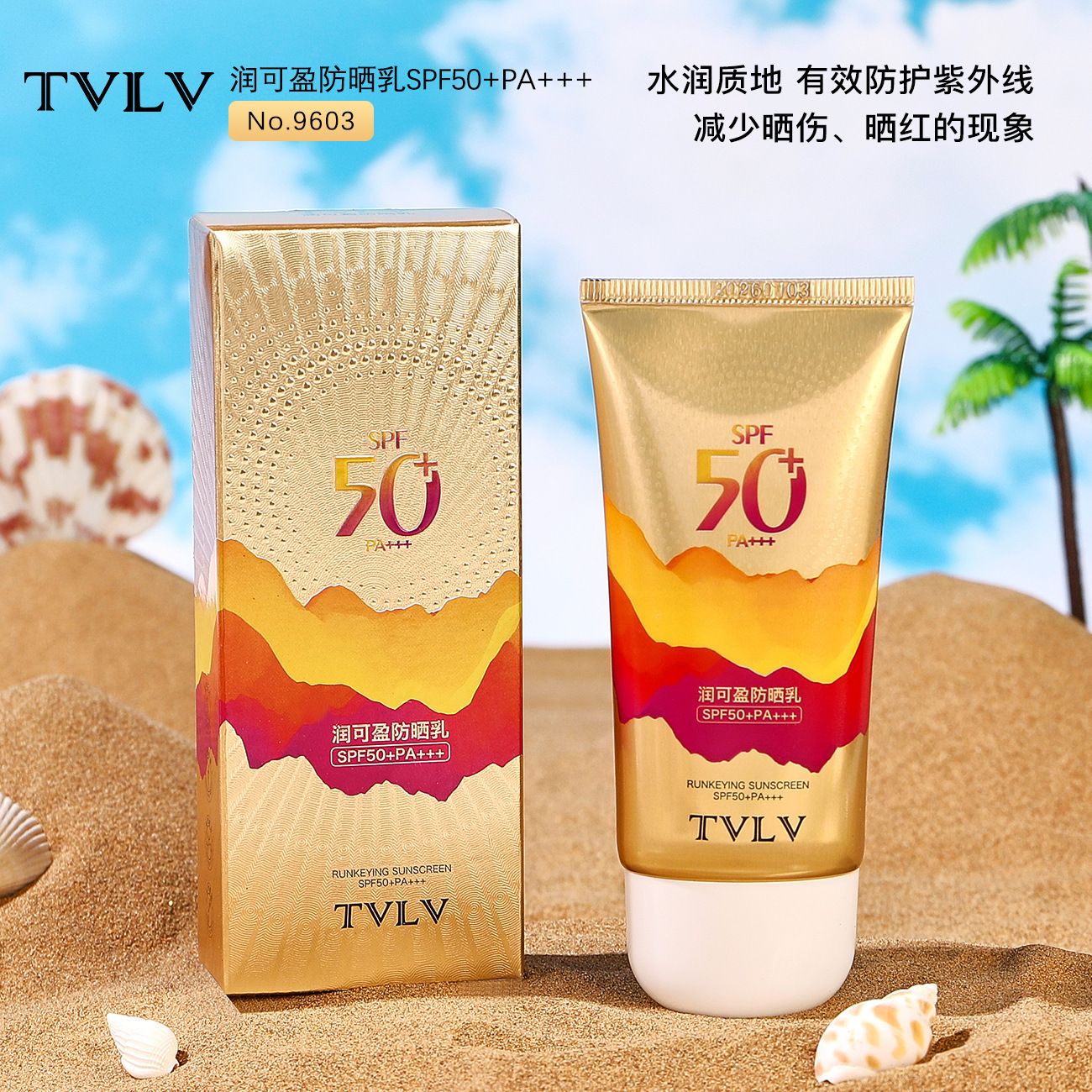 TVLV ルンケイイン日焼け止めローション、軽量、防水、汗防止、日焼け止め、黒ずみ、日焼け、マイルドな修復日焼け止め、新製品