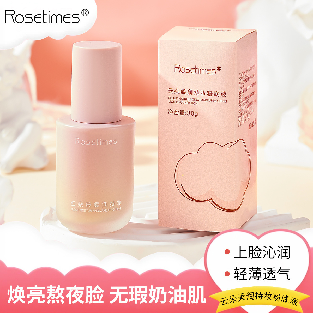 ローズ エイジ リトル ブルー シールド リキッド ファンデーション コンシーラー、保湿、オイル コントロール、保湿、化粧持ちの長持ちする BB クリーム、軽くて明るく、自然にフィット
