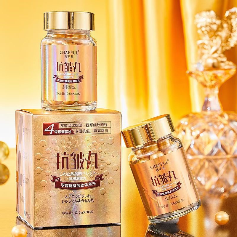 Xiangfuer ダブル効果抗シワ充填しわ除去錠保湿ライトライン抗シワ錠 30 カプセルボトル液体エッセンス