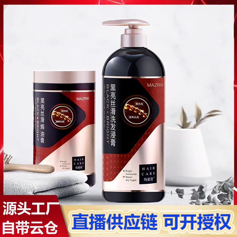 工場直送の黒光沢シルキーシャンプー浸出物+黒光沢シルキーベーキングクリーム、ふけ防止、ふわふわシャンプーの修復