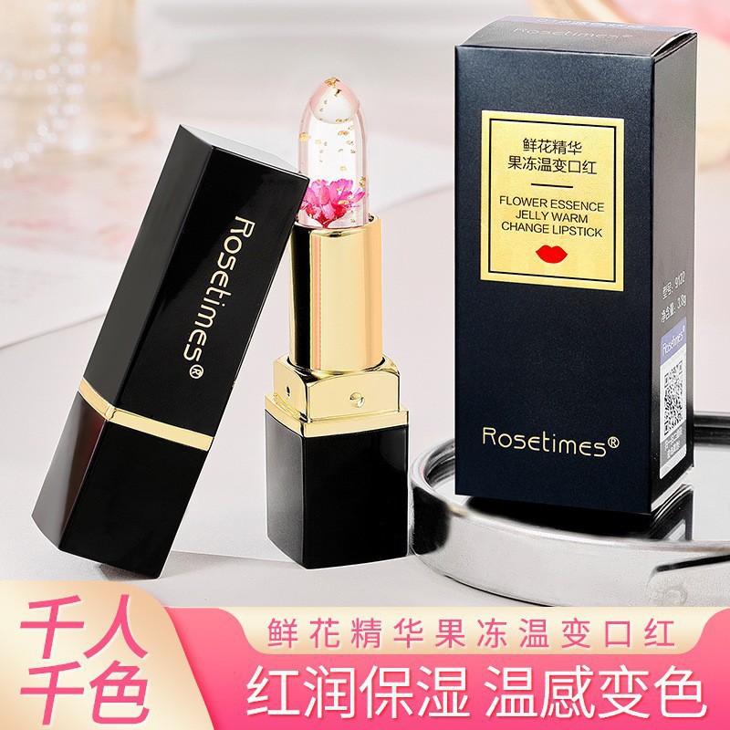 Douyin 人気の花びらゼリー花口紅クリスタル温度変化色保湿ノンスティックカップ非退色口紅本物