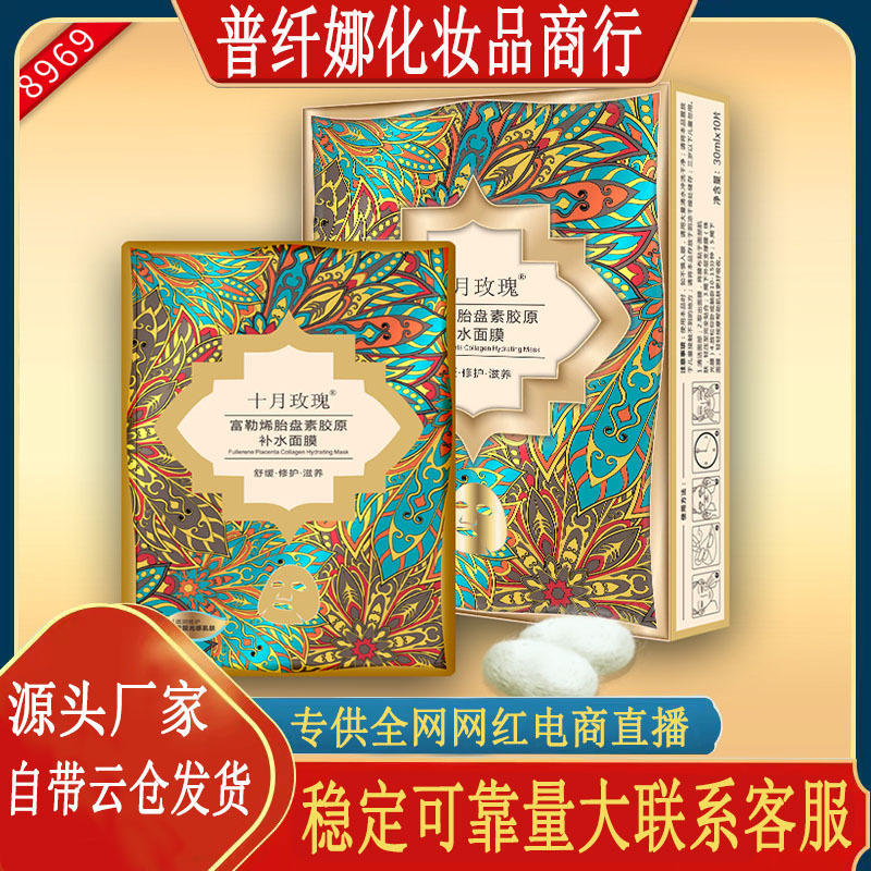 プシナ オクトーバーローズ フラーレン プラセンタ コラーゲン ハイドレーティング マスク 10枚入 生放送 ネットセレブマスク