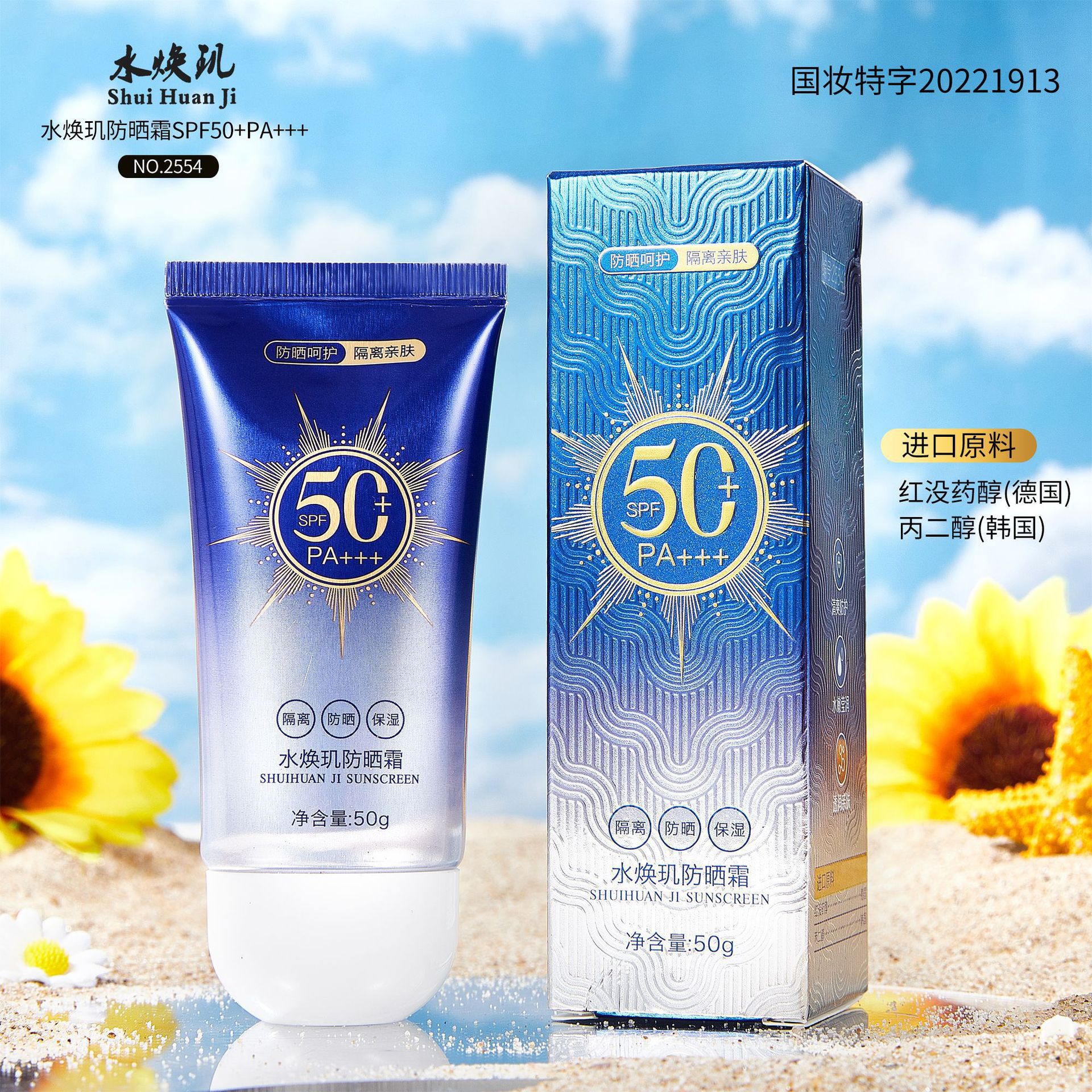 Shuihuanji 日焼け止め SPF50+PA+++ は、肌の日焼けや日焼けを防ぐために、UV をクリアに分離して保護します。