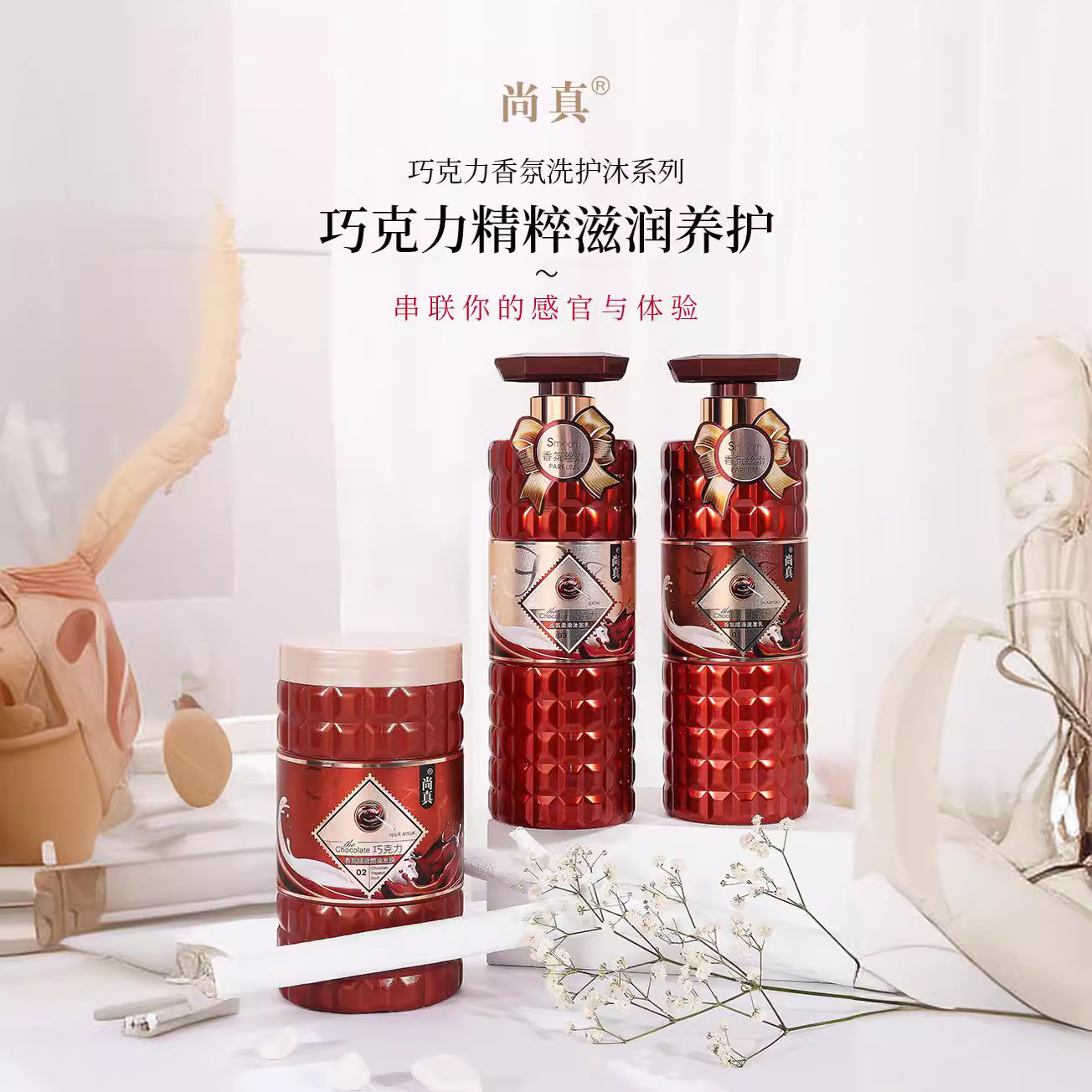 Shangzhen チョコレート ロングラスティング フレグランス シャンプー フレグランス シャワー ジェル スムース ベイクド オイル ヘアマスク ケア セット