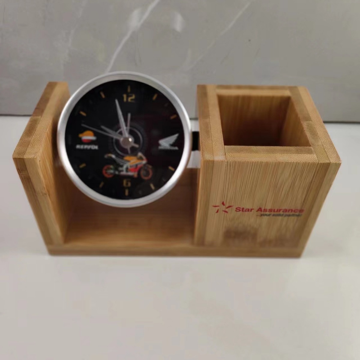 クリエイティブデスクトップ竹木筆筒目覚まし時計オフィス学習文房具収納定時計