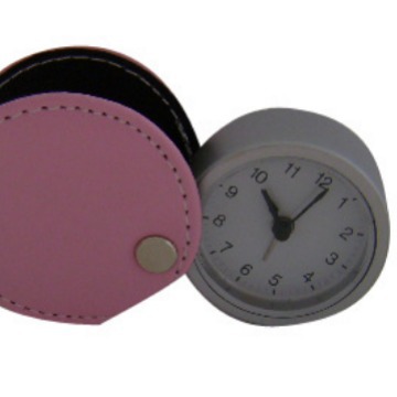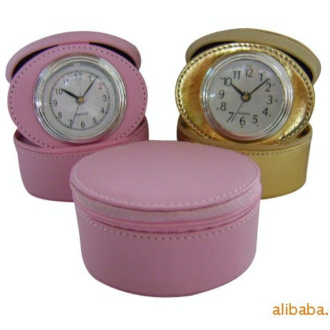 革金属旅行時計ファッション携帯pu旅行目覚まし時計