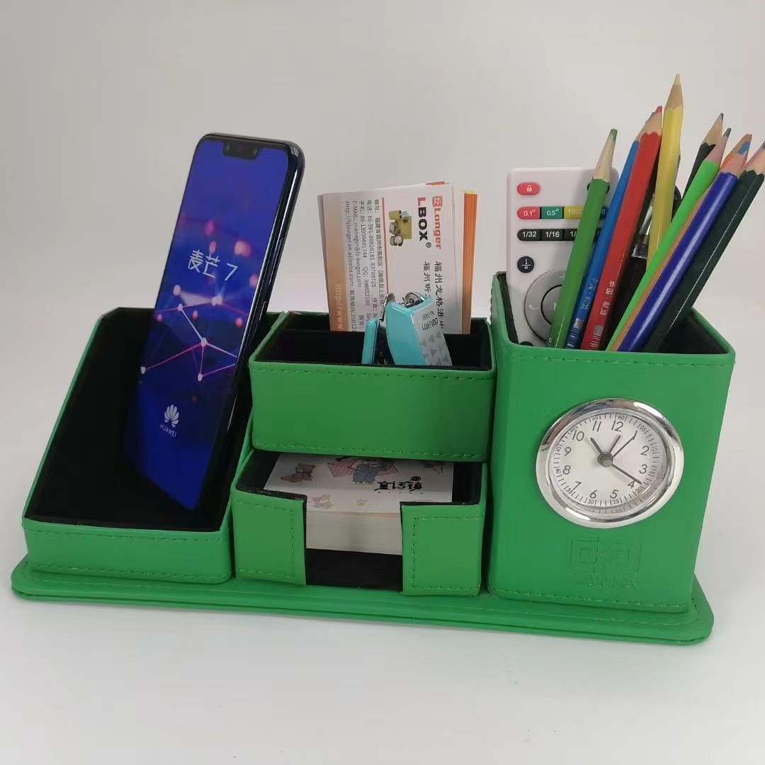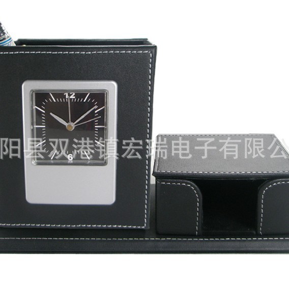 卸売り人気多機能革筆筒文房具収納時計事務学習デスクトップ整理筆筒時計