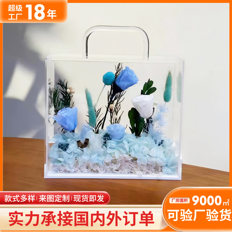 アクリル透明ポータブルギフトボックス中国のバレンタインデー永遠の花ポータブルフラワーボックスプロポーズ告白誕生日ギフトボックス
