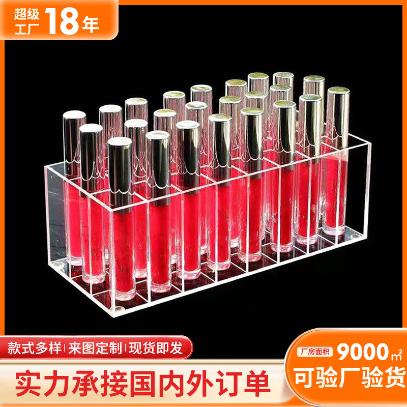 透明アクリル24グリッドリップグロス・口紅収納ボックス、卓上リップスティック・リップグロス・メイクアップ・アイブロウペンシル収納棚、カスタムメイド