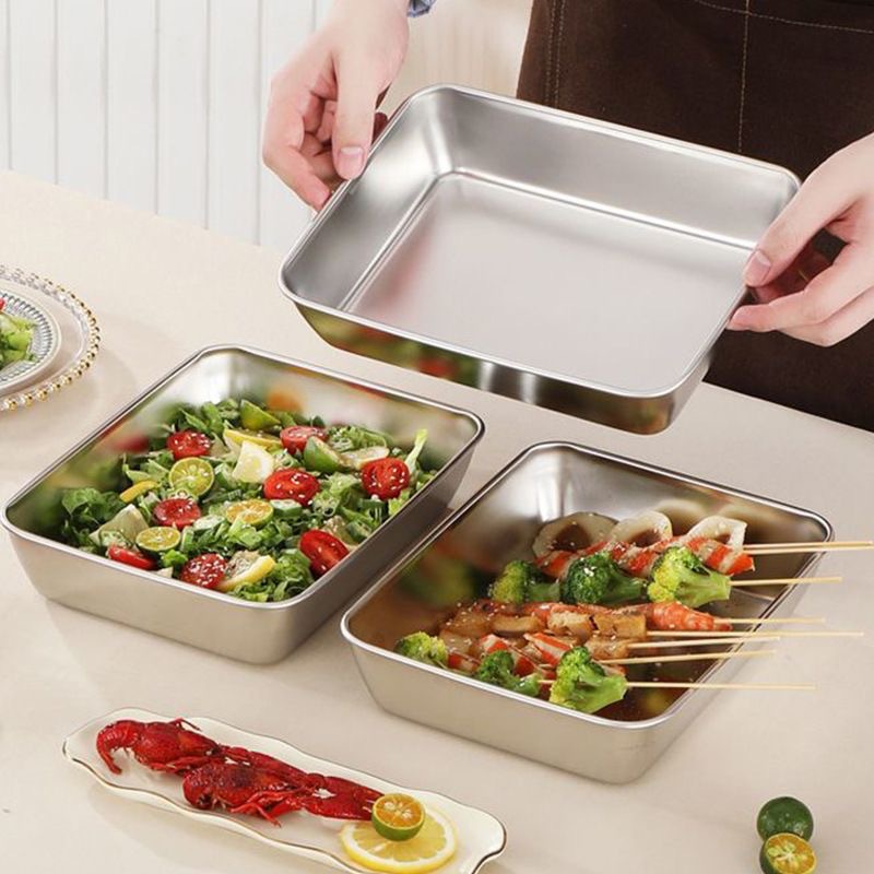 ステンレス鋼の正方形の洗面器、長方形の平底の正方形のプレート、ビュッフェ洗面器、蓋付きの商業用ファーストフード洗面器、厚みのある猫砂洗面器