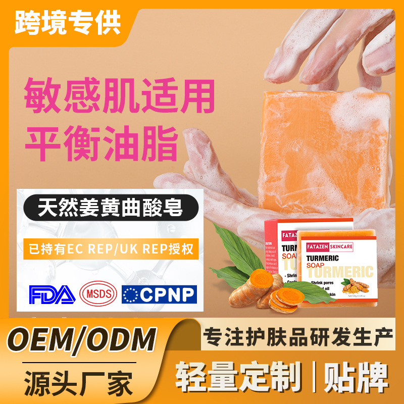 敏感肌用の国境を越えた英語FATAZEN天然ウコンコウジ酸石鹸、ニキビ除去、油分バランス、抗炎症石鹸に適しています。