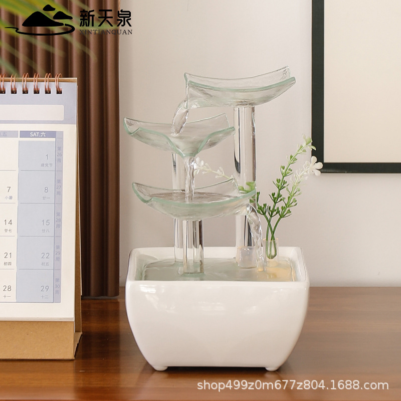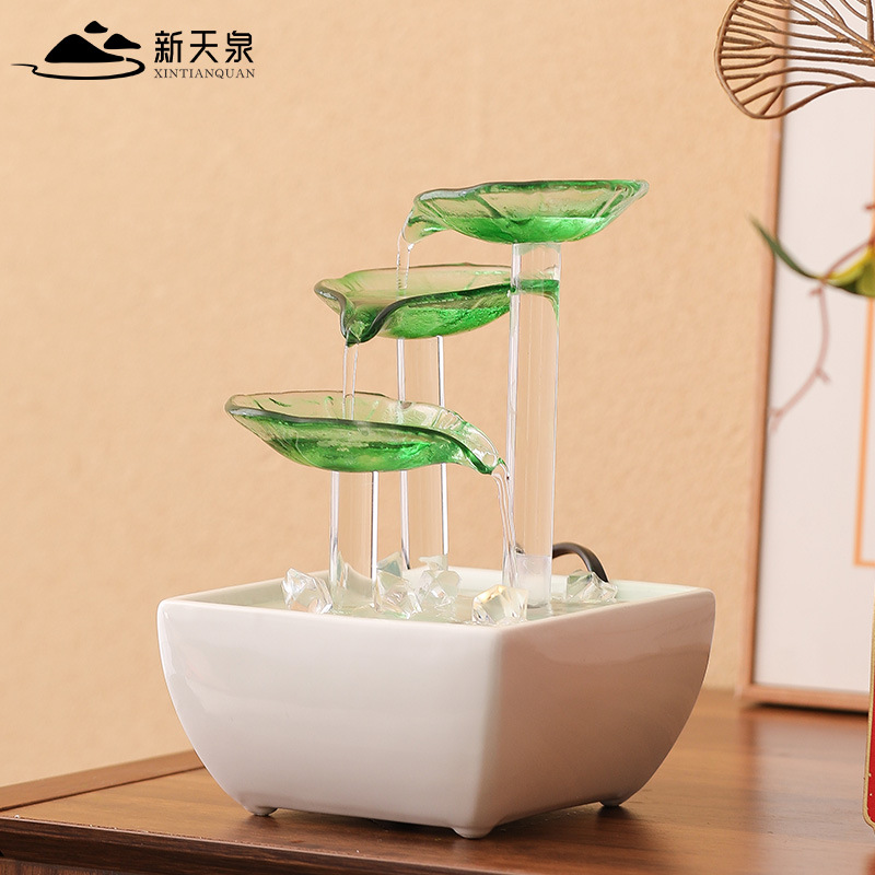 ガラス蓮の葉流水装飾品屋内ホーム自動循環水加湿オフィスデスク風水富の装飾