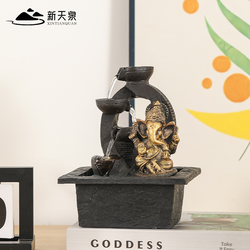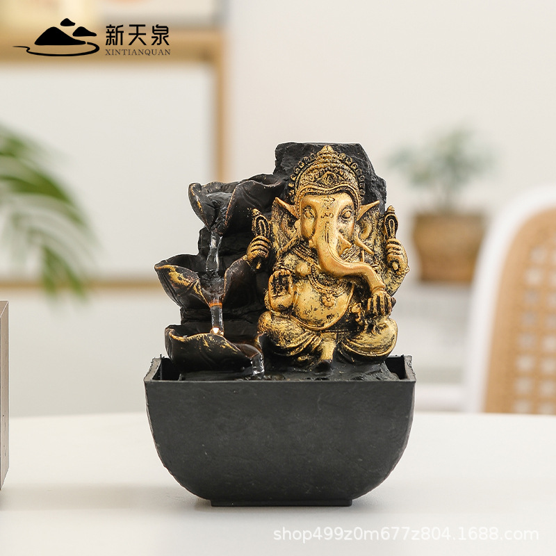 東南アジアの象の神、水が富を生み出す、富を引き寄せる装飾品、水循環噴水、小規模オフィスコーヒーテーブル、デスクトップマイクロランドスケープ