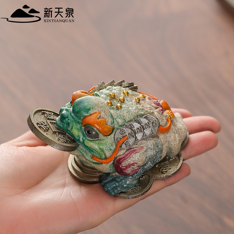 砂岩の幸運のカエルの装飾品、国民的トレンドの三本足のカエル、オフィスワークステーションのデスクトップ装飾、オープニングギフトショップ