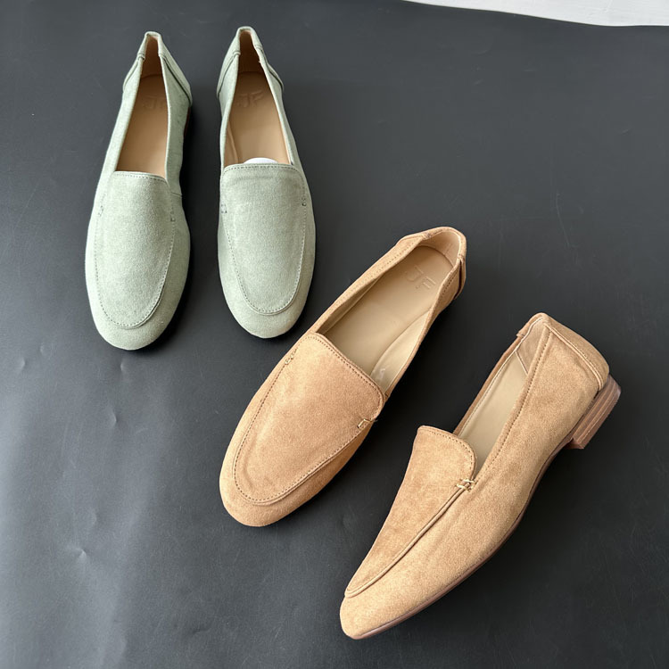 文芸復古フロスト楽福靴女性羊皮豆靴丸首軟底ミルク靴2025ベルベット女性靴
