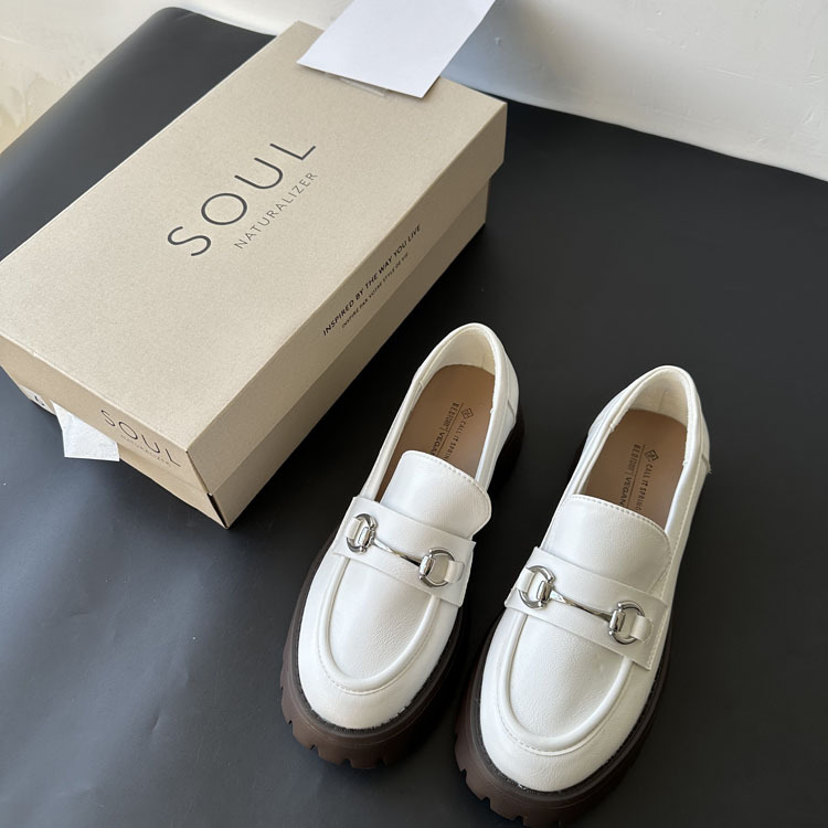 秋に起爆した丸い靴の厚い底の英倫靴2024種類の金属ボタンファッション婦人靴の対外貿易卸売り